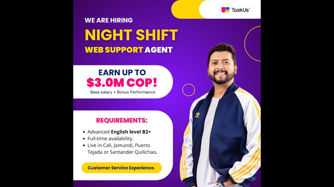 Aplicar ya a nuestras vacante Night Shift/Call Center Bilingue/ English B2/ Web Support - 2 días off