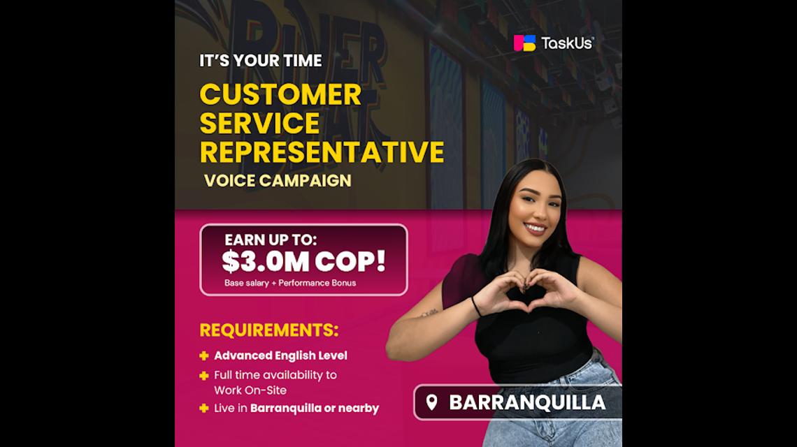 Se parte de equipo de TaskUs y conviértete nuestro próximo agente Customer Service (Voice Campaing) - Medicina Prepagada + Beneficios TOP.
