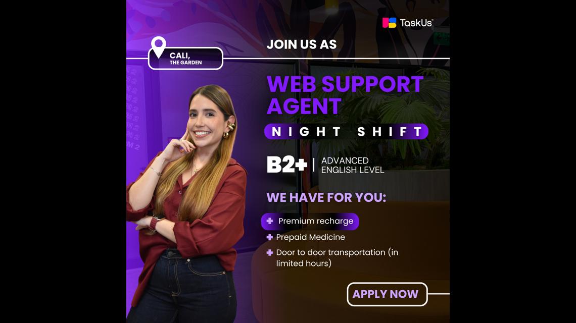 Únete a TaskUs: Campaña Bilingüe Web Support/Night Shift/ English B2 - 2 días off